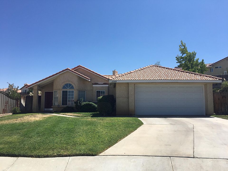 Cozy 4-bedroom, one-story K & B home on a cul-de-sac in great condition. Vaulted ceilings, fireplace in family room. Tucked into a hillside, has slab patio. Gardener included. Up the hill from 30th Street West and Rancho Vista Blvd., close to Marie Kerr Park, AV Mall and Highland High School. One-year lease required.