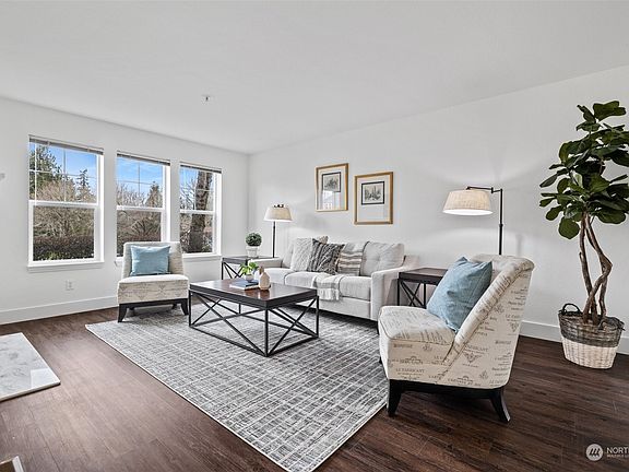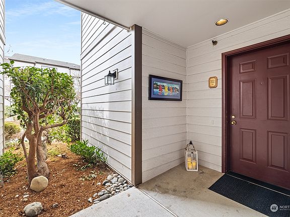 Fabulous & Perfectly Located Home, Just Steps Away from the Community Pea Patch Garden & Library. Desirable no stairs first floor home w private entry. Gracious 2 bd & 2 ba corner unit w exposure on three sides, making it light & bright w stunning sunset & sunrise views. Home boasts new windows, new paint & newer luxury vinyl plank flooring throughout. Inviting living room features propane fireplace & the elegant formal dining room has slider to private sun deck. Master bdrm w walk-in closet, access to a 2nd covered private patio, en suite bath w step-in shower. The large kitchen w breakfast nook looks out onto a garden courtyard. Utility/laundry room w side by side W/D, separate storage closet & one-car garage. 55+ Cmty w amenities galore!