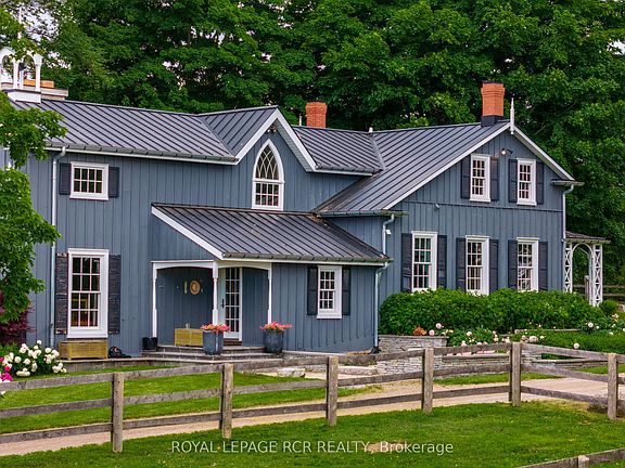Nestled on 99 acres of countryside, this extraordinary estate offers a perfect blend of functionality, and natural beauty. Designed with the horse enthusiast in mind, this property boasts an elegant century home built in 1864, 3 barns and breathtaking landscapes from every sight line. Whether you're an equestrian, a hobbyist, or simply seeking a serene retreat, this estate has everything you need and more. From its sloping roof and inviting porch to its quaint shutters and whimsical details, the house exudes charm and character at every turn. Step inside, and you'll find a large stone fireplace, hardwood floors, and cozy nooks that invite you to relax and unwind. A beautifully designed main floor featuring high ceilings, hardwood floors, and custom finishes throughout. A chef's dream kitchen with soapstone countertops, top-of-the-line appliances, and a spacious island, perfect for entertaining. The main floor is complete with formal dining room, large living area, and an inviting family room with views from all angles. Upstairs features 3 bedrooms including a spacious primary suite with a private balcony, walk-in closets, and an ensuite bathroom with panoramic views from each window. Spanning across acres of paddocks, this horse farm boasts a meticulously designed layout that harmonizes with both the natural surroundings and the needs of its equine residents. Impeccably constructed stables equipped with modern amenities and spacious stalls, your horses will feel right at home. Ample oak board paddocks and lush pastures offer substantial space for your horses to roam, graze, and exercise freely. Located in a countryside setting yet just a short drive away from urban amenities, (Approx. 7km to grocery, restaurants and schools in Schomberg, and less than 10 minutes to Highway 400) this property offers the perfect balance of seclusion and convenience. **EXTRAS** Water lines to paddocks, buried 400 amp service ,new drilled well(2016),kitchen reno(2018).