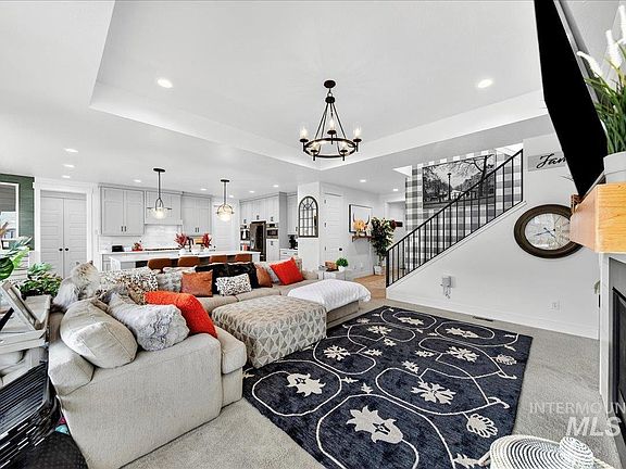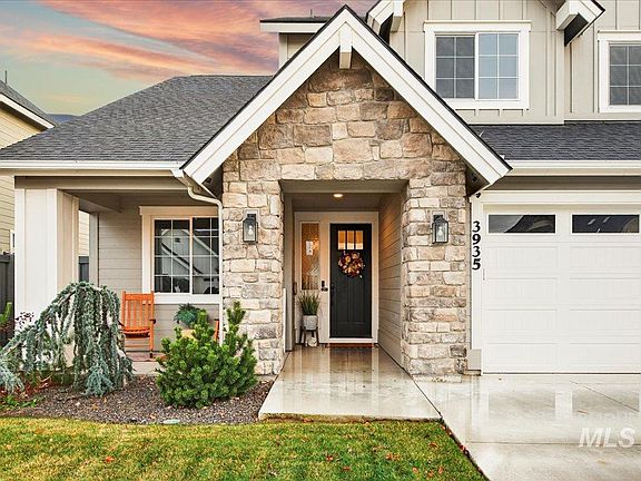 Step into this stunning 3,033 sq ft home nestled in the heart of Meridian’s prestigious Century Farm subdivision. Century Farm offers a vibrant neighborhood atmosphere w/easy access to shopping, dining, & I-84. Designed for both elegance & everyday living, this spacious residence features 4 bedrooms, plus a flexible 5th room that can serve as a den, guest suite, or additional bedroom to suit your needs. The welcoming entryway sets the tone w/ warm wood flooring, designer wallpaper, & curated décor that blends modern flair w/ rustic charm. A carpeted staircase w/ a sleek black handrail leads to a generous upstairs bonus room—perfect for a playroom, media space, or home office. The open-concept main level offers a gourmet kitchen w/ premium finishes, light-filled living spaces, & seamless flow for entertaining. Thoughtful touches like built-in shelving, gas fireplace, stylish accents, & custom finishes elevate the home’s character. Luxurious primary suite with spa-inspired bath & walk-in closet This home blends comfort, style, and function—ready to welcome you home.