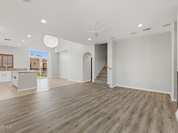 Just listed and priced to sell — Welcome to Unit 1024, a well maintained, turn-key townhome in the gated Villages at Aviano. This 3-bed, 3-bath home has been updated with wood-look flooring, modern light fixtures, and styled touches throughout. The open-concept kitchen has granite counters, stainless appliances, and crisp white cabinetry... all overlooking a spacious living area with soaring vaulted ceilings, a sleek fireplace and incredible natural light pouring in from all angles. Primary suite has its own private balcony access, a walk-in closet, and an oversized en-suite with double vanities and a large, tiled shower. The property also offers a 2-car garage and indoor laundry! This community is know for it's extensive amenities... including a resort-style pool, 15-playgrounds scattered throughout the property, fitness center, clubhouse, tennis courts, basketball courts, community trail and more all just minutes from Desert Ridge Marketplace and the Loop 101. This location is known for quick access to the entire valley!