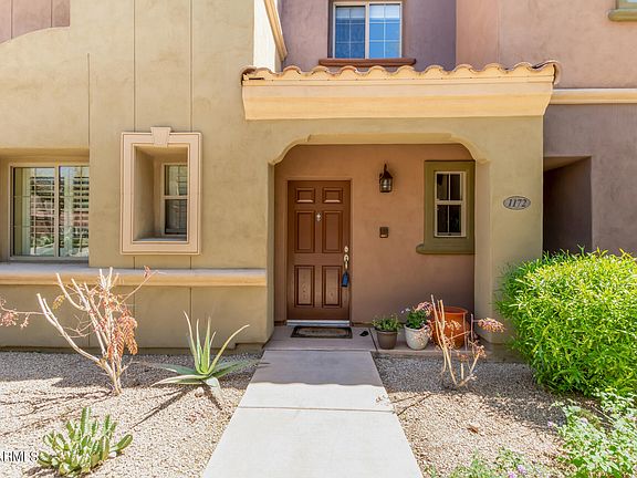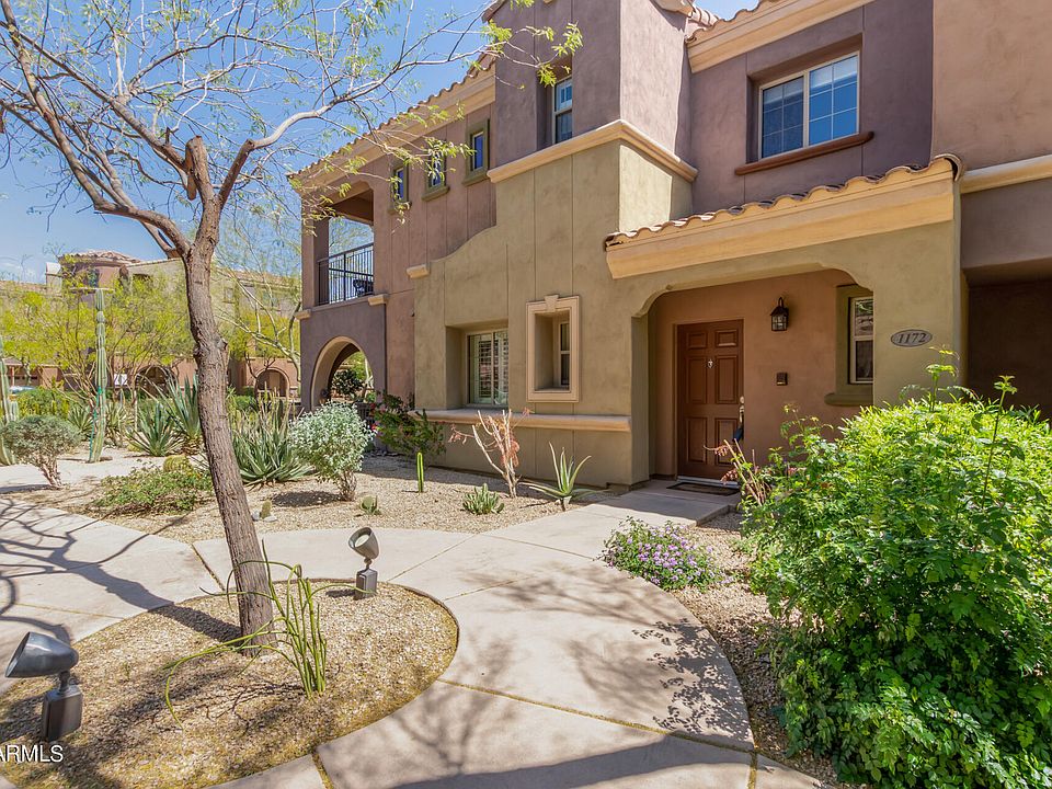 2-bed,2-bath townhome w/den. Ideal location; easy access to Mayo Clinic, Westworld, loop 101, easy access downtown & I-17. Includes 2 car garage. Beautiful open layout w/large living & dining areas, tons of natural light, & tile flooring w/Berber carpet in bedrooms. Kitchen boasts SS appliances, granite counters, & plenty of cabinets. You'll love the main bedroom offering a sitting/office room w/sliding doors to the attached balcony! It also includes a lavish ensuite w/separate tub/shower, dual granite sinks, & a walk-in closet. Secondary bedroom has access to the front balcony. Laundry room w/built-in cabinets. Community Pool, Fireplace & BBQ Area. Additional AVIANO Amenities: Larger Community Pool, Spa, Fitness Center, Clubhouse, Tennis & Basketball Court. Playground Are Walking & Biking Trails.