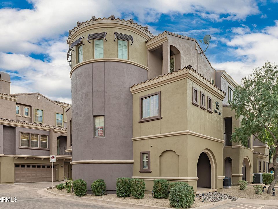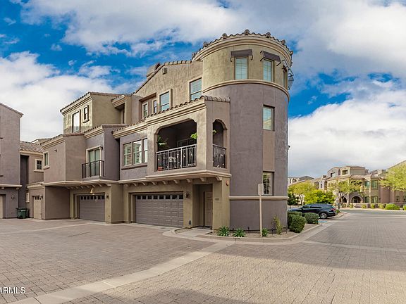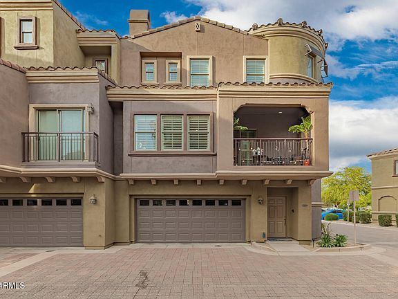 MOTIVATED SELLER WANTS THIS CASTLE SOLD! Rare opportunity to own your own Castle! Beautiful resort-style living in the gated community of Villages at Aviano! Beautiful 2-bedroom, 2-bath townhome is the perfect full-time residence or lock-and-leave 2nd home. First floor Entrance Hall, Laundry Room, large Storage Closet, & 2-car garage. A grand sweeping curved staircase leads to an open-concept floor plan with a large Great Room and balcony with new remote roller shades, open Kitchen with S/S appliances, granite countertops and generous cabinet space and a Dining area located in a dramatic double height 'tower'. A guest bedroom & full bath complete this level. The large primary suite offers a walk-in closet, dual vanities, soaking tub, and separate shower. Don't miss your chance to own in one of North Phoenix's most sought-after communities! Enjoy a local community pool and workout facility PLUS the amazing amenities of Desert Ridge' s 16,000 sq ft Clubhouse, resort-style pool, fitness center, tennis & pickleball courts, and more. Minutes from Desert Ridge Marketplace, High Street, JW Marriott, Mayo Clinic, and convenient to Loop 101, SR-51, & SkyHarbor Airport. This is sure to tick all the boxes on your "What I want In My Dream Home' list.