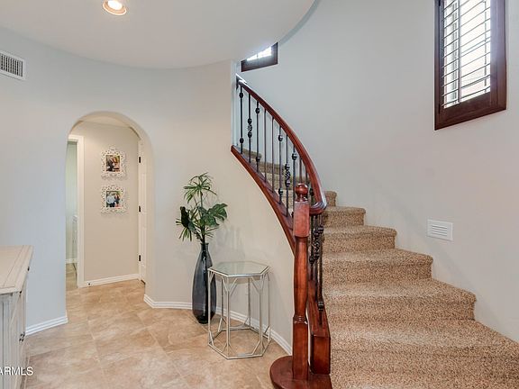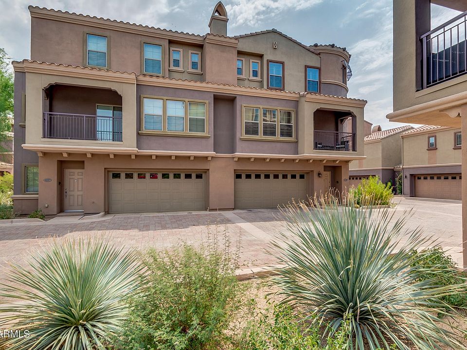 Immaculate unit situated in a prime location in Villages at Aviano in Desert Ridge! This home boasts plantation shutters throughout, tall ceilings and open spiral stairs with iron rails, inviting you into a spacious kitchen and living area ready for entertaining. Half bath on main level and two bedrooms upstairs equipped with ensuite bathrooms and soaking tub in master. Interior repainted in 2020, brand-new carpet, new water heater, water softener, Ecobee, separate laundry room with sink and two-car garage complete with new epoxy flooring. Access to the state-of-the-art Aviano Community Center where you can enjoy a full gym, heated pool & spa, tennis & basketball courts, walking paths and more. Close to Desert Ridge Marketplace and the 101 & 51. Available now!