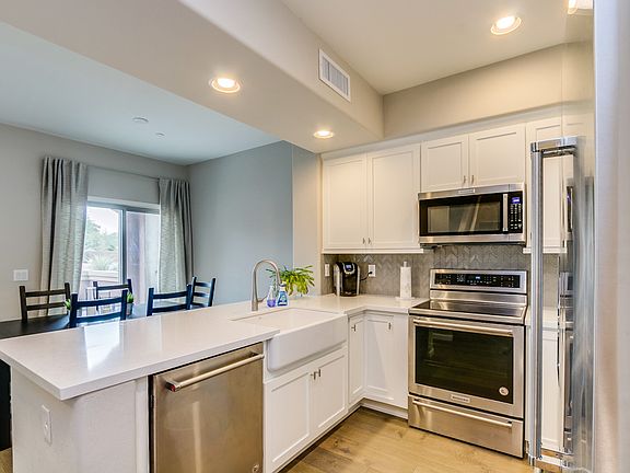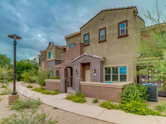 Nestled in the beautiful Villages at Aviano, is one of the nicest townhomes you will come across in the Desert Ridge area. The Villages is a gated community that is perfect for singles, families or as a vacation home and also grants you access to the main Aviano Community Center, which is only a short walk away. The beach entry resort style pool, state-of-the-art fitness facility, tennis courts, rock climbing wall, walking paths, and desert views are an unmatched added bonus to this already incredible townhome. This 3bd, 2.5ba Toll Brothers Cerreto Model townhome offers luxury style living w/minimal upkeep. Sleek & stylish finishes throughout with 60K in builder upgrades, including engineered hardwood floors, plantation shutters, upstairs laundry for convenience, and surround sound.... ...The trendy kitchen features Kitchen Aid Appliances, gorgeous quartz countertops, chevron tile backsplash & farmhouse kitchen sink. Retreat to the master suite w/private balcony, mountain views & serene spa-like en-suite w/frameless glass-enclosed shower & large walk-in closet. The 2-car garage is oversized, complete with epoxy floors, extra storage, and main floor access to the kitchen. You'll enjoy the convenience of great local restaurants, shopping & entertainment at the Desert Ridge Marketplace; plus easy access to move around the Valley with freeways 101 & 51 nearby.
