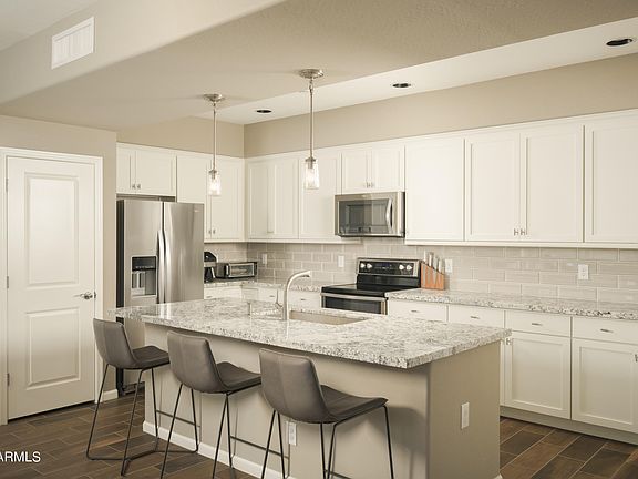 Welcome to one of the finest units available in the highly coveted and gated community, Villages at Aviano in Desert Ridge. This popular floor plan is located in one of the newest buildings (built in 2017) and offers many upgrades. The spacious great room features a large kitchen, a massive island, and an expansive family room. The high ceilings and an elegant staircase, overlooking the formal dining area, fill the space with just the right amount of natural light, creating a serene ambiance. The Aviano clubhouse serves as the community hub, offering a gym, resort-style pool, basketball courts, tennis courts, and more. Be sure to explore the clubhouse! Additional features include a guest bedroom with an attached ensuite, powder room on the main floor, laundry room sink, and 2 car garage.
