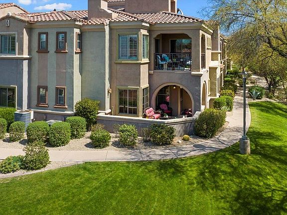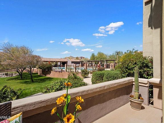 Feels Like New. One of the sought after single level condos. Toll Brothers built w/Toll Brothers Quality Finish & Detail! 2 Bed 2 Bath with a 2 -car tandem garage. Ideal Location Corner Unit with Large Patio Facing Lush Greenbelt & Overlooking the Pool! Gated Community with Clubhouse, BBQ Areas, Tennis & Basketball Courts, Walking Trails, Rock Climbing Walls & Playgrounds! This condo Features Granite Slab Countertops & Stainless Steel Appliances, Large Pantry, Designer Tile Flooring plus Cinnamon Wood Blinds Throughout & Cabinets in the Laundry Room! Wired for Surround Sound & Private Security System! Walking distance to Desert Ridge Shopping & Restaurants! Don't let this one get away!!