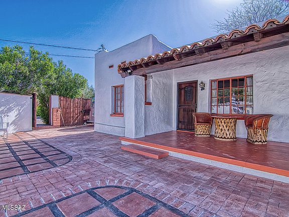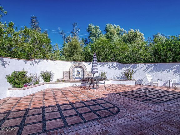 Under the Tucson sun lies Casa Escondida. This classic mud adobe house is a hidden oasis, just yards from the Rillito river bike path. Casa Escondida has been restored to her original 1936 beauty when it was the ranch house for the working hacienda, which is now occupied by the Racquet Club and Racquet Club Ranch. It still has much of its original charm with a few modern updates, like the cozy speakeasy wine cellar. This home is tucked away inside a 6' stucco privacy wall, and a nearly continuous stand of 15 foot oleanders. This home is truely an indoor/outdoor home with wrap around patios, inviting you to the outdoor living space. Its minimalistic landscape creates a zen like atmosphere in the heart of our bustling city. Ascend the spiral staircase to the roof, to toast the sunset, or do yoga under the shade of the giant mesquite with an unobstructed views of the Catalinas, all less than 5 miles from the University of Arizona. The home has the original wood flooring. The kitchen has been remodeled with beautiful 42" white cabinetry, custom knobs, soft close cabinets and drawers, undermount sink, quartz countertops and stainless steel appliances to include: french door refrigerator, gas range, hood and a dishwasher. Recessed can lighting. The living room is very charming with a beautiful fireplace. The AZ room/den has wood beamed ceilings,colored concrete floors and a french door leading to the rear entertainment area. The home is in meticulous condition, recently painted interior and exterior, recoated roof, HVAC 2016. The front private courtyard is amazing with brick pavers, stone flooring, a waterfall, raised planters, covered patios and amazing arched entry with double 10' wood doors. 200 amp electrical panel. The construction is mud adobe with reinforced concrete.