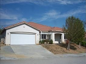 Nestled in the foothills in West Palmdale, this home with a desirable single-story design enjoys beautiful views and nearly 2400 square feet of living space. The open floor plan begins in the living room and flows into the formal dining area. At the rear of the home, the spacious family room is made functional with a built-in media niche and made cozy with a contemporary-styled tile fireplace. The adjoining kitchen features tile counters, an abundance of cabinetry and an island/breakfast bar. With a private location on one side of the home, the expansive master bedroom includes a large walk-in closet and attached spa-like master bath with dual sinks and separate garden tub and shower. Three more sizable bedrooms, another full bath and a bonus room, perfect for an office or extra bedroom, complete this elegant home. Entertain outdoors on the covered patio with a relaxing ambiance provided by the tiered fountain and the gorgeous views; landscaping includes lush shrubs and trees.