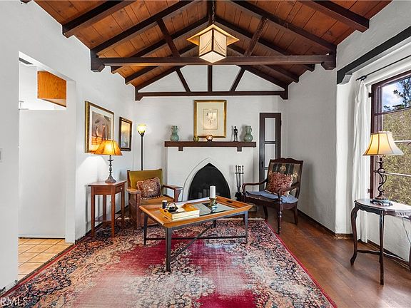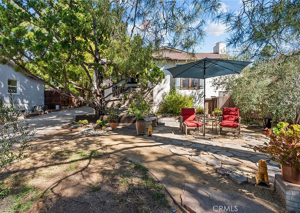 Tucked away from the street and situated amongst perfectly placed plants, glorious trees and pathways to delightful seating areas, this is the one you have been looking for! Highly coveted Crescenta Highlands neighborhood presents this one of a kind home that blends the warmth and character of it's 1932 era with comfortable updates that make the home truly special. Step inside to find gorgeous wood beamed ceilings, decorative fireplace, original hardwood floors in the living room and front bedroom, classic details and plenty of natural lighting! The inviting kitchen combines charm and functionality with its classic tile counter tops and coordinating backsplash. Featuring newer modern appliances and a spacious eat in area. A built in buffet adds extra storage and serving space, blending style with practicality. Just off the kitchen connects seamlessly with the family room, offering easy access to both your back and side yard. Upstairs, the spacious primary retreat offers a private sanctuary complete with a cozy fireplace, walk in closet, wood beamed ceilings, ceiling fan and an en-suite with dual sinks and serene views. Step out onto your private balcony to enjoy morning coffee or relax and get lost in your favorite book, this is the place to be! The yard is sophisticated, warm and inviting at the same time. The garage has been converted to storage area or whatever your imagination has, complete with french doors. Upgrades include: 2022 New AC and Heat, 2020 New electric, Insulation, Ducting, Rain Gutters, 2 new clean outs, concrete pavers and crushed marble gravel, EQ retrofit under house, 2020 interior and exterior paint (cool life paint - cools home in Summer) 2024 new appliances, and so much more! Located next to parks, hiking, shopping, dining, transportation and freeway access. This home has so much love and is waiting for a new owner to call it home.