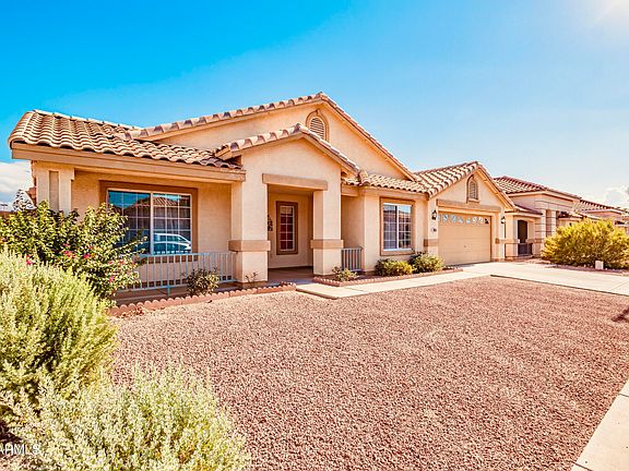 Welcome home! A spacious single-level house in Cactus Park. 4 bedrooms, 2 baths, and a 2 car garage. Nice desert landscaping. Greeted with a cozy front porch, the welcoming interior boasts vaulted ceilings with tons of natural lighting, neutral paint, and tile flooring. A functional floor plan- large formal living room and a family room with a fireplace. The open-concept kitchen includes stainless appliances, wood cabinets and an island with a breakfast bar. Oversized master bedroom, ensuite with dual sinks, separate tub/shower and a walk-in closet. Nice sized lot! The Backyard has a covered patio and hot tub.