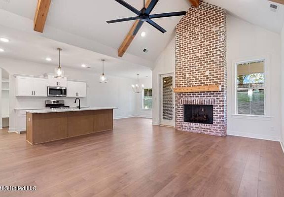 Wonderful 4 bedroom, 3 bath home with bonus room on .6 acre lot. Open concept with split bedrooms down. Great room has soaring cathedral ceiling with cedar beams and floor to ceiling brick face on fireplace. Kitchen has large island, gas stove, tile back splash, custom cabinets with quartz tops, and a walk in pantry. Primary suite features cathedral ceiling with beams, his/hers walk in closets with custom shelving, walk through shower, split vanities, and free standing soaking tub. Split to other side of first floor is laundry room, full bath, and bedroom. Dining room designed as multi-purpose area. Upstairs has 2 large bedrooms, full bath, bonus room, and walk in attic space including a third floor attic area. Enjoy evenings on your vaulted back porch with additional patio. Conveniently located near the Snowden District with easy access to I-55 and I-269. Schedule your appointment today to see this beautiful home.