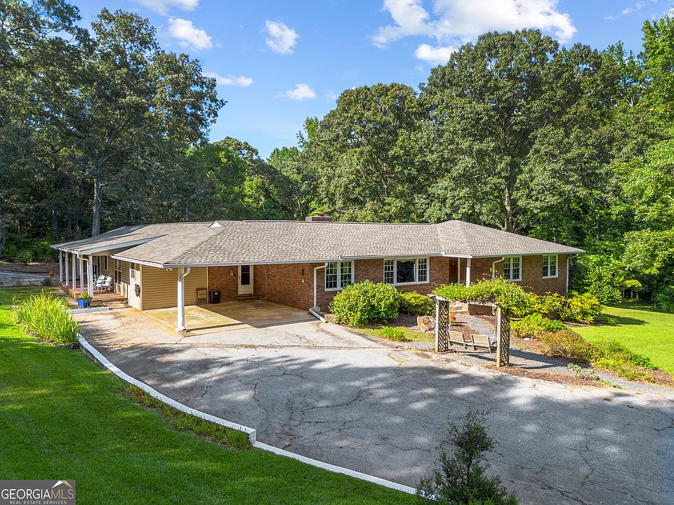 A rare and versatile estate on 5.88 private acres in Snellville. This unique property features a 3-sided brick main home and an attached guest house connected through a shared laundry/mudroom. The main home offers front side brick construction with a brand-new roof (2024), 2 bedrooms and a versatile bonus room, a cozy living room with fireplace, a kitchen with Corian countertops, a main bath with Corian shower and vanity, and a hall bath featuring a cast-iron tub with vintage lavender tile. Additional highlights include a bright sunroom, a spacious covered back porch, a partially finished basement with room for a workshop or storage, a separate A/C unit and water heater, a well-maintained 2-car covered carport, and thoughtful updates throughout. The attached guest house offers its own private entrance via a separate driveway, vinyl siding with a new roof (2024), a spacious living room, a large bedroom with oversized closet, two full baths, and a kitchen with granite countertops. It also features its own A/C unit and water heater, a covered side porch, and a 1-car covered carport, making it fully independent and comfortable for long-term stays or income potential. Outdoor features include a 16x16 powered workshop, RV parking with dedicated septic hookup, a storage barn along with older barns, an old covered well, and mature plantings including five blueberry bushes, a fig tree, and a pear tree. Surrounded by wooded privacy, this property offers peace and space while remaining conveniently located. Most appliances remain, making this estate truly move-in ready for owner-occupants or investors seeking flexibility, space, and endless possibilities. Near shopping.