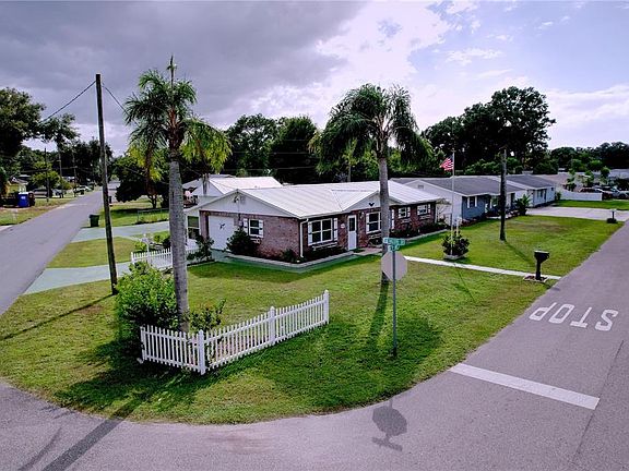 Discover the charm and potential of this solid brick 3BR/1.5BA home located on a spacious corner lot in a non-flood zone in the heart of Zephyrhills. This property features a durable masonry exterior, open living and dining areas with plenty of natural light, and an inviting enclosed porch - perfect for relaxing or entertaining. The large concrete pad, carport, and detached garage provide ample parking and workspace. Enjoy the convenience of an inside laundry area and a functional floor plan ready for your personal touch. Situated in Zephyr Heights, this home offers a peaceful neighborhood setting just minutes from local schools, shops, restaurants, and Zephyr Park. With great bones, a fantastic location, and endless possibilities, this home is ideal for anyone looking to invest, renovate, or create their dream Florida retreat.