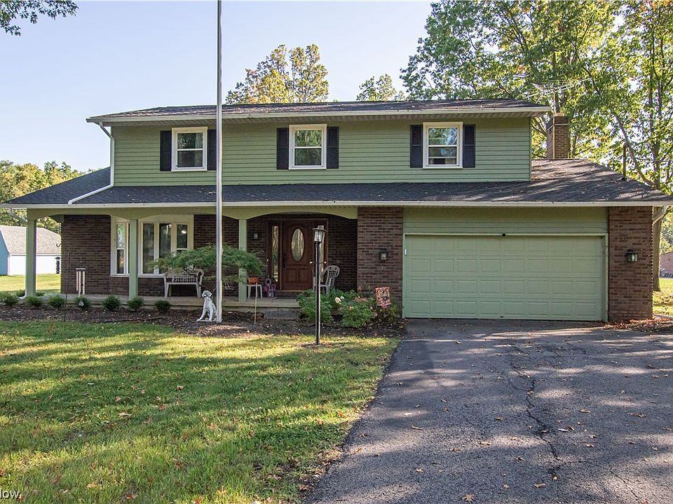 Beautiful country living on 2 acres but not far from anything! This colonial sits on a fabulous piece of property and offers tons of big-ticket upgrades. Roof (2022), windows (2021), furnace (2021), gas line run to the house (2021), family room carpet (2022) and more! The big front porch features a bay window and welcoming entrance into the home. Inside, you'll discover a huge living room and updated eat-in kitchen with newer appliances (dishwasher 2022, range 2021) that connects to the dining room. Slider to the back deck lets in tons of light. The family room features a fireplace and beamed ceiling. Upstairs you'll find the master suite with walk-in closet and updated bathroom, plus three other good-sized bedrooms and another full bath. The basement includes a rec room, extra workshop space with fireplace, and a big storage room. So convenient! The flat backyard holds tons of possibility and includes a shed.