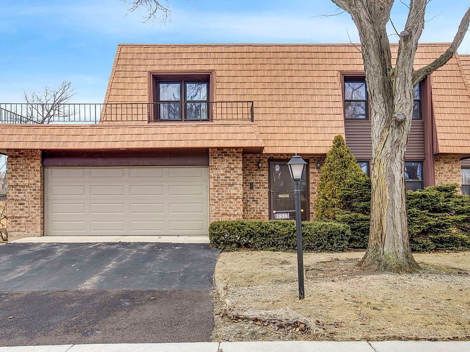 What a find! Rarely available in Normandy Hill this 2 story end unit townhome lives just like a single family home but is Maintenance Free! Entertain family and friends in the expansive living room and dining area that flows right to the large back yard through sliding doors. The eat-in kitchen, also open to the back yard, has so much space it doubles as a family room with a couch and bookshelves. The space on the second floor is amazing with 3 large bedrooms including a huge primary suite with a 5' x 13' walk-in closet and a large bathroom with 2 separate vanities and separate shower and tub. The hall bath allows sharing and privacy with it's divided space keeping the sinks separate from the tub/shower area. Please check the floor plans to see the size and shape of these big rooms. Although the laundry is in the basement, there is a perfect spot near the Primary bedroom so you can bring it upstairs. This home boasts a full unfinished basement and a 2 car garage and is in award winning School Districts 27 and 225 (GBN High School). Price reflects owner's awareness that some updating is needed but the space, location, community and school district are amazing!