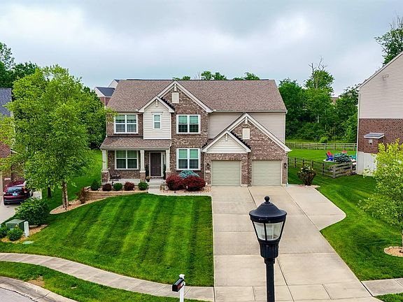 Spacious bright & airy home on a quiet cul-de-sac street in Sherbourne. Drees built Buchanan floorplan boasts an attractive exterior w/ beautiful landscaping, multi-gabled roof line, dimensional shingles, full brick wrap w/ soldiered accents, & inviting covered porch. 9ft ceilings throughout the entire 1st level. Entry has hardwood flooring & decorative front door w/ sidelight. 1st floor study w/ glass French doors. Huge eat in kitchen features hardwood floors, recessed lighting, island, Cambria quartz counters, tiled backsplash, undermount sink, SS appliances, oversized pantry, breakfast room w/ fan, & walkout. Formal dining room adjoins kitchen. Cozy living room includes tile surround gas fireplace, 10 ft ceilings, & wall of windows overlooking the rear yard. Primary suite highlighted by soaring coved ceiling, fan, awesome walk in closet, & bath w/ split vanities, garden tub, new frosted windows, & shower. 2nd suite w/ coved ceiling & bath. 2 additional bedrooms w/ walk ins & fans. 2nd floor family room, 2 linen closets, & 3rd full bath. Incredible rear wooded yard enhanced by Trex deck w/ aluminum railings, high end motorized louvered pergola by StruXure, & recreational area!