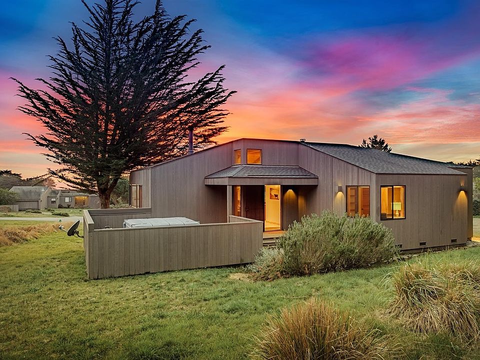 Charming West Meadow, 2 bed, 2 bath, one-level home designed by Don Jacobs offers blue water views and close proximity to Shell Beach. Living room features wood walls, open beam ceilings, wood stove and window seat with an ocean view. Remodeled kitchen. New flooring, new paint, new light fixtures and appliances. Master bedroom has wood stove and walk-in-closet. Guest bedroom has loft for additional sleeping space. Home being sold furnished.