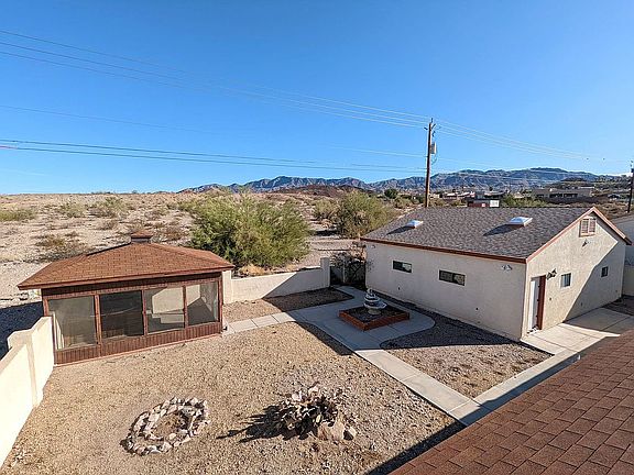 Lovely Vintage Craftsman Home on the Eastside Outskirts of Lake Havasu City Arizona. Large lot backing up to BLM state land will give you uninhibited desert & nature views forever. Homes with these views are rare & special and make you feel that you are no longer living in the city. And with an unused additional extra large workshop / Casita Additional building the total covered footage exceeds 2200' potentially supporting 3 bedrooms & 3 full bathrooms. The house was originally constructed as a 2 bedroom / 2 bathroom 1343' home, but this property's extra large deluxe workshop can easily be converted to support a "mother in law" Casita extra home. The house interior exhibits several high rounded archways, the main room sports a high ceiling, with lots of light from numerous directions. Real wood doors & trim, unlike the new home placebo veneers. LOTS of closet space with full height + extra deep linen closets in both bathrooms in addition to 2 hallway closets, plus the 2 walk-in closets in the bedrooms. The kitchen sports more then normal cabinet storage space with retro wood cabinetry & lots of drawers & cabinets. The kitchen opens into the 2 car attached garage, and is standard height, but has a washer & dryer as well as shelving + a work bench. NEW hot water heater promises years of service. The rear of the house has a large screened in Arizona room, and at the rear of the large back yard is a gazebo with a jacuzzi spa looking out at the openwide desert.