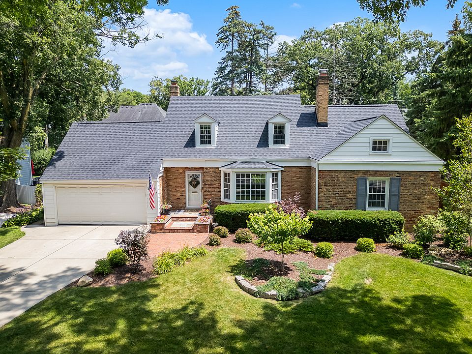 Welcome to this timeless Cape Cod gem, nestled on one of the most picturesque tree-lined streets in the highly sought-after Field Park neighborhood of Western Springs. Situated on a stunning 80-foot-wide professionally landscaped lot, this sprawling home offers the perfect blend of character, comfort, and classic appeal. As you step inside you are welcomed through the foyer that leads you to the large living area with fireplace ideal for chilly evenings or hosting game nights. However, the epicenter of this home is the expansive family room featuring vaulted, beamed ceilings, a second fireplace, and windows that fill the space with natural light and offer serene views of the backyard patio. Off the family room, a versatile library or home office with a wet bar that provides a perfect place to work or relax. The main level also includes a large formal dining room, a spacious eat-in kitchen overlooking the yard, and a large bedroom with a full bath-ideal for guests, multigenerational living, or a convenient main-floor suite. Gleaming hardwood floors flow throughout the main level, enhancing the home's warmth and timeless appeal. Upstairs, you'll find two generously sized bedrooms, a full bath, ample closet space, separate hall storage and a cedar closet for additional storage. The finished basement includes a third fireplace, laundry, and additional storage.  This lovingly maintained home offers the rare combination of timeless architecture, incredible outdoor space with lush gardens, and an unbeatable location. Enjoy peace of mind with recent updates, including a new roof (2021) and HVAC (2024). Located steps to town, train, parks, and top-rated schools-Field Park Elementary, McClure Jr. High, and Lyons Township HS- this home offers an unmatched lifestyle in a truly walkable location.
