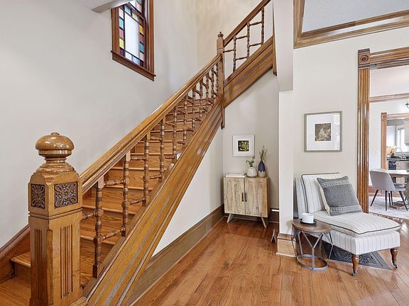 A perfect mixture of today's design updates and impressively maintained period details abound in this 2+ story, 2,600+ square foot home. The ideal main floor layout includes a dramatic foyer with a detailed front staircase and stained-glass window, sun-filled living room with wood-burning fireplace, separate formal dining room, bedroom or office, large updated kitchen with walk-in pantry, and seamless family room addition, all with shining oak hardwoods and dramatic 10-foot ceilings. New, energy-efficient sliding glass door leads to the private backyard with new sod and an oversized 2+car garage. 4 bedrooms on the second level include a primary bedroom with 7 x 10 walk-in closet. The third story is a completely open, sprawling amusement room or second family room. This home is move-in ready with up-to-date mechanicals, maintenance-free siding, ample room for storage, and brimming with charm. Located minutes from DT Minneapolis, Seward Friendship Co-op, parks, breweries and restaurants!