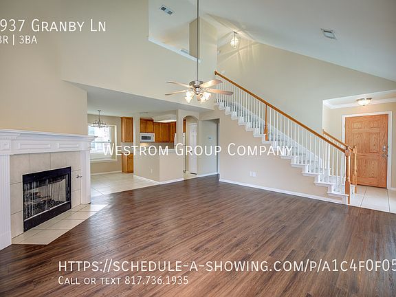 Charming 3-Bed, 2.5-Bath Home in Flower Mound Birdville ISD! Welcome to this inviting 2-story home featuring a beautifully landscaped front yard with mature trees and great curb appeal. Inside, youll find an open floor plan with a mix of laminate, ceramic tile, and plush carpet flooring. Downstairs, enjoy a spacious living area with vaulted ceilings and a cozy fireplace that flows into the bright breakfast room and kitchen. The kitchen offers built-in cabinets, a breakfast bar, an electric range, fridge, and a walk-in pantry, perfect for everyday living and entertaining. The primary suite features dual sinks, a separate shower, a relaxing garden tub, and a generous walk-in closet. A convenient half bath is also located on the main level. Upstairs, 2 additional bedrooms share a full bath with built-in cabinets, plus theres a versatile bonus room, great as an office, playroom, or second living space. Youll also find a laundry closet with a full-sized washer and dryer included. Enjoy outdoor time in the fenced backyard and take advantage of the 2-car single-door garage for parking and storage. This home offers space, comfort, and a great location in a desirable neighborhood. Don't miss it!