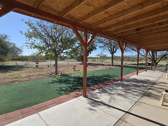 Spacious 1800 sq ft manufactured home with recent updates on 5 acres. 3 bedrooms, 2 baths, and a 2-car carport. Additional buildings for parking & storage. Main suite is separate from the other bedrooms with huge . Updates include new AC/heat pump, new appliances, laminate flooring in kitchen and high-traffic areas, and carpet in the bedrooms. New slider & windows. Full-length covered porches for those breezy sunset evenings. Landscaping with rock accents enhances the fenced yard. Detached 30x30 workshop with 10-ft roll-up door, additional 40-ft shipping container with lean-to can house 3 vehicles, plus 10x16 workshop with refrigerators and freezers. The roof was resealed and this home is move in ready! Enjoy a shared well. No floodplain. Open rural surroundings, not too far from town!