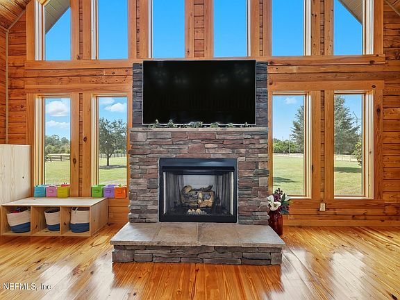 *Open House Sat 1/31 from 12-2 pm * Welcome to 3938 Sunset Sky, a one-of-a-kind modern log cabin retreat set on over 5 fully fenced acres in Middleburg - where peaceful country living meets thoughtful design and everyday convenience. From the moment you arrive, the wraparound covered porch invites you to slow down and take in the natural surroundings. Inside, the open-concept living area showcases vaulted ceilings, a stunning wall of windows capturing unforgettable sunsets, and a cozy gas fireplace anchoring the space. A spacious loft overlooks the main living area and is currently used as a non-conforming third bedroom. The home offers two bedrooms and two full bathrooms downstairs, including a luxurious primary suite with rustic elegance. The kitchen is equipped with gas double ovens, modern appliances, and flows effortlessly into the main living areas, perfect for entertaining or everyday comfort. Additional interior upgrades include a tankless water heater, water treatment system, and whole-home generator for peace of mind.