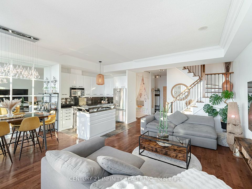 Rare 2-Storey Penthouse Condo With All Utilities Included. Luxurious Living Experience & Complete Privacy With Truly Breathtaking Unobstructed Views To The North And West, Perfect For Watching Unforgettable Sunsets Over Downtown Mississauga And Celebration Square ** Over 1800sqft Interior Space ** Largest Condo In Building ** Maintenance Fee Includes All Utilities ** Open-Concept Layout. 10-Foot Ceilings On Main Floor, Hardwood Floors Throughout And Floor-To-Ceiling Windows That Fill The Space With Natural Light And Showcase The Gorgeous Views. The Condo Is Beautifully Renovated With Modern Finishes Throughout. Spacious Living Room With Gas Fireplace That Enhances The Ambiance. Mirrored Wall In The Dining Room And Beautiful Chandelier Add A Touch Of Elegance To The Space. The Kitchen Features Granite Countertops, Central Island And Stainless Steel Appliances. Step Out Onto The Open Balcony Directly From The Living Room to BBQ With Available Gas Hookup, Enjoy Outdoor Relaxation And Gorgeous Views. Storage Under The Stairs Provides Additional Space. The Main Floor Also Includes A Powder Room For Guests And A Den With Multiple Potential Uses. 2nd Floor Has Large Primary Suite With 3pc Elegant Ensuite And His-Hers Closets. 2nd Large Bedroom And Modern Main Bath With Sleek Finishes. 2 Versatile Dens For Various Separate Uses ** Or Combine Both Dens, Add A Door & Create A Third Room That Has A Large Closet, As Illustrated In Picture** Convenient Laundry Room. Top-Tier Amenities, Swimming Pool, Bbq, Terrace, Mini Golf, Playground And Gym. Ideally Located Across From Celebration Square And Near Library, Shopping, Transit, Go Station, College, School Routes & Highways. Enjoy Privacy And Comfort In A Central Location That Offers Panoramic Views And An Elevated Lifestyle. Don't Miss The Opportunity To Own This One-Of-A-Kind Penthouse! **EXTRAS** Maintenance Fee Includes All Utilities!! Hydro, Heat, Water, Parking & Locker.