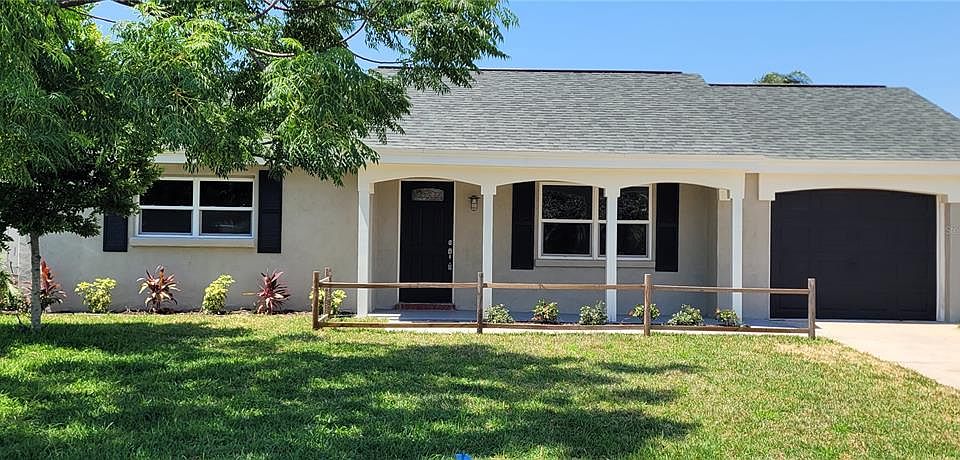 I doubt you will find another home in this area that looks like the interior of this home. The Flood Zone is X. EXCEPTIONAL WORKMANSHIP AND ATTENTION TO EVERY DETAIL set this COMPLETELY REMODELED 3 BEDROOM, 2BATH, GARAGE home apart. The bright and open floor plan features ALL NEW Shaker white kitchen with a CENTRAL ISLAND featuring a deep stainless sink, dishwasher, disposal, drawers, and large cabinets finished with a stunning GRANITE countertop. The new stainless LG APPLIANCE PACKAGE starts with an upscale French door fridge and includes a matching Range, Dishwasher, and Microwave with a standalone chimney-style hood above the range. The master suite is at the back of the home and features a brand-new ensuite bathroom with designer tile surfaces. The architectural roof and AC were replaced in 2020. All windows and glass doors are new energy-efficient vinyl. All interior doors are new and are trimmed with upscale molding. Beautiful WATERPROOF LUXURY VINYL FLOORING complements the NEWLY TEXTURED WALLS throughout the home and the new baseboard brings everything together. The entire backyard features NEW FENCING giving you privacy and safety, and also features a SIDE GATE. Both bathrooms feature a tasteful blend of the latest designer finishes that will please family and guests for years to come. Lighting features numerous LED adjustable ceiling-mounted fixtures spaced to properly light each room. All plugs and switches are from DECORA to complete the home's brand-new look and feel. Outside the ENTIRE home has been finished with NEW STUCCO AND PAINT to give it a new home look and feel. Curb appeal makes your home a joy to come home to. The entire front yard has new CITRA-BLUE ST AUGUSTINE sod which requires less water than traditional St Augustine as it is more drought tolerant. Commuting to Pinellas, Tampa and surrounding communities are major reasons homeowners are moving to West Pasco. This home is like new throughout and will give its new owner many years of trouble-free living at this price. It is an exceptional value that must be seen to be appreciated. Be sure to include this unique home in your search. You also have the option to join the Beacon Square Civic Association, just two blocks away, with these amenities Junior Olympic Size Pool – Cooled in the Summer and Heated in the Winter. Tiki Hut with electrical access. Grills and tables. Playground. Game Room with Pool tables, Darts, Foosball, Air Hockey, and more! Library with books, magazines, and DVDs. Reading area with comfy couches and tables. Kids Play area Gym. Rental Hall. Special Events. Shuffleboard, Horse Shoes, Basketball, and more! Go to the website for more information. https://www.bscafl.com/