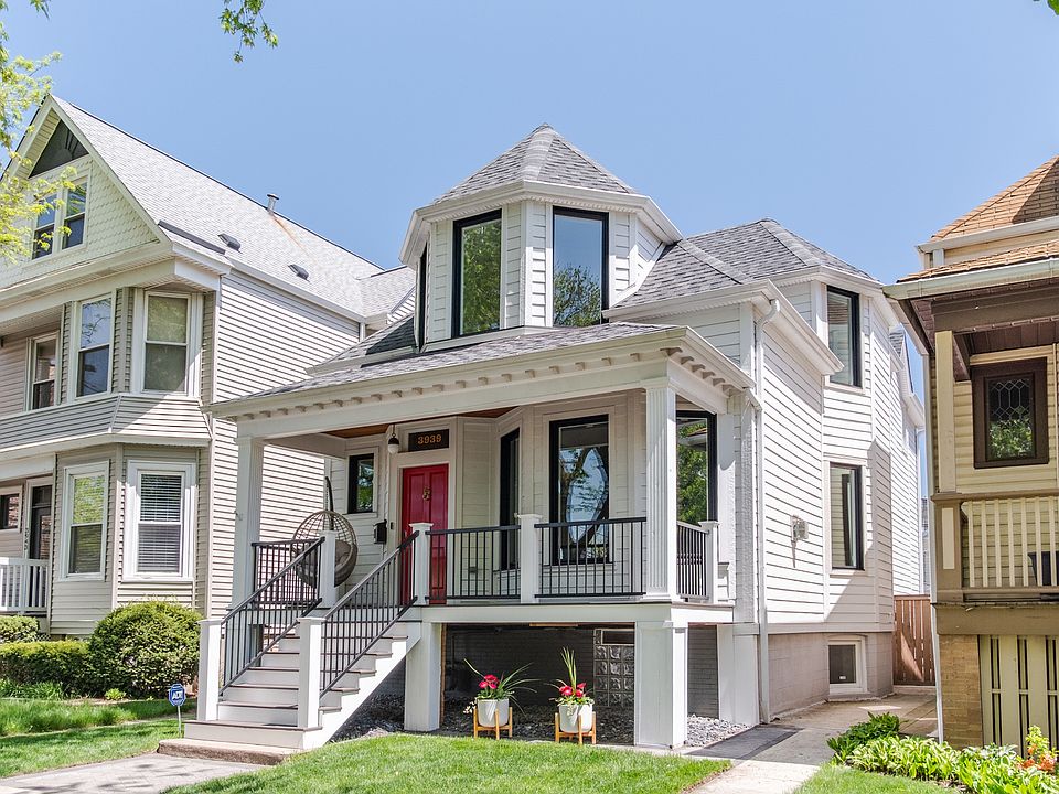Looking for an extra wide renovated home with character and modern touches throughout? Look no further than this 5 bedroom home located in the Bell School district featuring 4 generous size bedrooms upstairs and a 5th lower level guest suite. This home has been updated from top to bottom with the very best finishes for today's living. The natural light is abundant throughout, especially the morning light in the kitchen. The custom bar and fireplace area in the front living room / dining room area are great for entertaining but functional on a daily basis for the entire family. New eat-in kitchen features custom kitchen cabinets, quartz counters with an oversized double slab island, built-in custom coffee station and a high end appliance package. Extensive millwork throughout, new windows in the front of the house, updated landscaping, and all the appliances updated throughout the home, including laundry on the upper and lower levels. Deck in back with professionally installed turf. Roof replaced in 2020 and newer Hardie board siding. Come see for yourself! Located in the heart of North Center, a block away from St. Ben's, close to public transportation, parks, restaurants, and all the neighborhood amenities. Welcome Home!