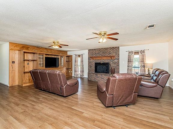 This well-maintained 4-bed, 2.5-bath beauty has lots of upgrades. Walk into a freshly painted living room with new flooring. The kitchen, utility room, and foyer have updated lighting for a welcoming vibe. Ceiling fans in the bedrooms, and the bathrooms boast new vanities. The kitchen is a highlight, with a built-in pantry and a new dishwasher, fridge, and gas stove. The dedicated home office got an upgrade with a built-in bookcase and desk. Inside, enjoy the woodwork in the foyer and a practical large utility room with carport access. Bedrooms offer walk-in closets, and there's extra storage under the stairs, in the linen closets, and attic. Outside, find a 30x40 metal shop with power, water, and septic for your projects, a 12x16 storage shed, and an additional 16x30 garden shed with an attached, covered 16x30 parking pad. Almost 10 acres of cleared land give you space and privacy, shaded by oak and cypress trees. There are blueberry bushes, a fig tree, and a small pond for a picturesque scene. This home combines modern upgrades and natural charm. Schedule a showing today and see for yourself!