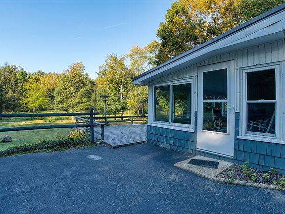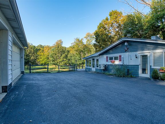 Nestled on a serene and scenic .88-acre lot, this charming 2-bedroom, 1-bath home offers a perfect blend of comfort and nature. Enjoy the convenience of a first-floor laundry and a spacious living room featuring a cozy gas fireplace—ideal for relaxing evenings. The eat-in galley-style kitchen boasts classic white cabinets and ample natural light, making mealtime a pleasure. A large sunroom provides a peaceful space to unwind, while the expansive entertaining deck overlooks a beautifully treed and wooded landscape teeming with wildlife. Whether you're sipping coffee in the morning or hosting gatherings, the deck offers a picturesque backdrop. A gently flowing creek runs behind the property, adding to its tranquil ambiance. Car enthusiasts and hobbyists will appreciate the 4-car detached garage, providing generous storage and workspace. This home is a rare opportunity to enjoy privacy, nature, and everyday convenience all in one inviting package.