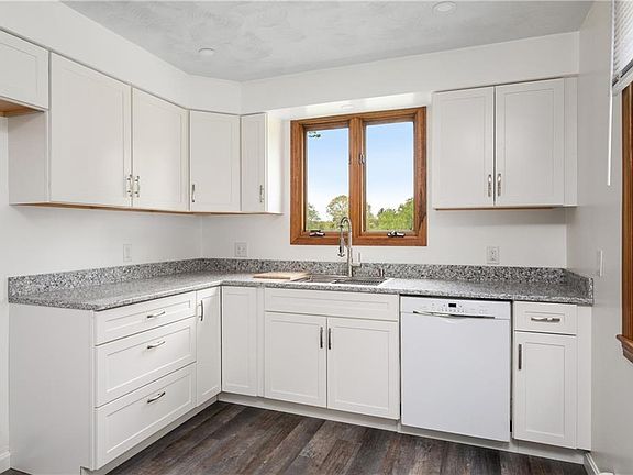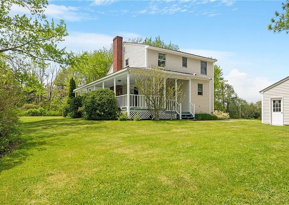 Welcome to this charming Cape-style retreat nestled on 5 acres of picturesque land in the Harrisville section of Burrillville. This beautifully updated home offers a perfect blend of modern comforts and classic New England charm. As you step inside, you're greeted by a cozy living room adorned with fireplace. The kitchen has been completed updated with new cabinets, granite countertops & flooring. There is a half bath located right off the kitchen. Bonus: the first floor features a spacious master bedroom complete with an ensuite bathroom. Upstairs, you'll find two additional bedrooms and a full bathroom, ideal for family members or guests. Outside, a farmer's porch invites you to enjoy the tranquility of the surrounding landscape, perfect for sipping your morning coffee or unwinding at the end of the day. A detached two-car garage provides ample space for parking and storage, adding convenience to your lifestyle.This property offers a rare opportunity to experience the beauty of rural living while enjoying modern amenities and updates. Don't miss your chance to make this charming Cape-style house your new home!