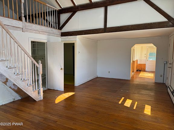 1879 COUNTRY FARMHOUSE, VIEWS, GREAT LOCATIONTHIS 3 BEDROOM, 1 1/2 BATH FARMHOUSE ONLY A SHORT DRIVE TO HONESDALE AND THE DELAWARE RIVER, OFFERS SPACIOUS LIVING ROOM W/ CATHEDRAL CEILING AND WOOD FLOORS, LOFT, LARGE EAT IN KITCHEN, ENCLOSED PORCH, DECK WITH UP-DATED FLOORING, FULL BASEMENT, UP-DATED SIDING AND ROOF. BEAUTIFUL 1.8 ACRE LEVEL PARCEL. $ 265,000.00