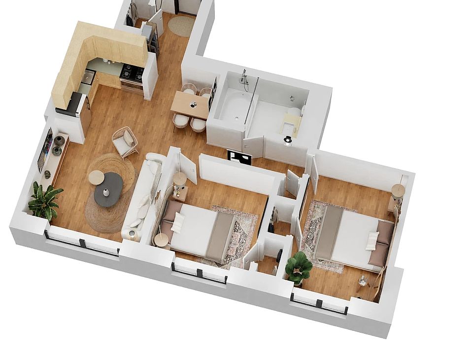 Balconies or terracesPrivate courtyardVideo intercomHigh ceilingsStainless steel appliancesPlenty of closet spaceHardwood floors