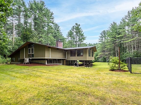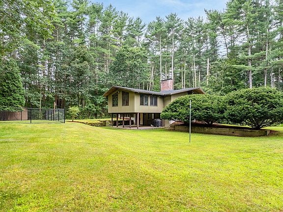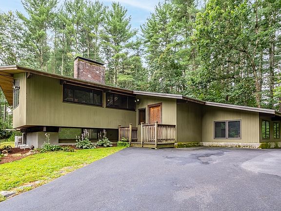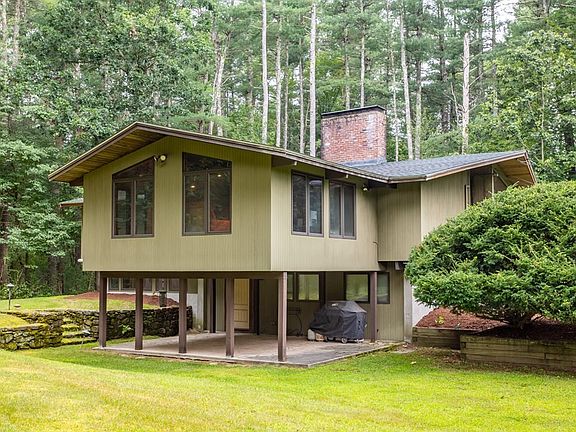 So much to love about this Mid-Century Modern Deck house, beautifully sited down a long private driveway on over 2 acres of magnificent land. This home has been enhanced by multiple fabulous additions which create a flexible floor plan with so many possibilities! Hardwood floors throughout much of the 1st floor. Beautifully beamed ceilings & vast room sizes create amazing spaces! A multipurpose bonus room surrounded by walls of glass & a sunken family room both have cathedral ceilings & allow lots of natural light. A dream kitchen with SS appliances, granite counters & large windows opens to the dining room & a beautiful fireplaced Livingroom. The spacious primary bedroom, a 2nd bedroom & full bath are offered on this floor as well. Lower level has a generously sized exercise room with fireplace & convenient exterior access. 2 add’l bedrooms, laundry, & lots of storage finish this space. The location, land & value are truly unbeatable! Come see and you too will agree!!!
