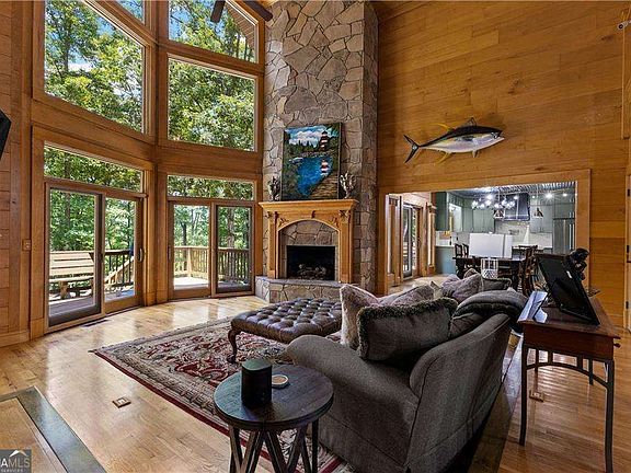 Live Like a King at the Lake - In a Home Built by a Champion Want to live like royalty at the lake? How about doing it in a custom-built retreat crafted by a 3-time Super Bowl Champion? Nestled on over 5 private, wooded acres directly across from the Earl Cook Recreation Area, this spectacular 4-bedroom, 3.5-bath home offers three levels of luxurious, lakefront living - complete with stunning water views and your very own brand-new, single-slip covered dock. From the moment you arrive, this home wraps you in a warm, rustic cabin feel with soaring ceilings and a wall of windows that frames the lake like a living portrait. A huge 2-story stone fireplace is the centerpiece of the main floor. The heart of the home has a fully remodeled kitchen with no expense spared - outfitted with: * French Republic vent hood * Commercial-grade appliances * Farmhouse sink * Pull-drawer microwave * Amish-built custom cabinetry * Cambria quartz countertops * 24" long-stem faucet * And all-new designer lighting There is also a bar, dining area, and cozy family room all perfect for entertaining. Two spacious bedrooms, a beautifully updated full bath, and a convenient half bath complete the main level. Upstairs is your private sanctuary: a spacious suite with a massive primary bedroom, brand new bath with luxury finishes, and a separate office or nursery space - all with panoramic views and total privacy. The basement level is a haven of its own, boasting an open-concept layout with a sitting area, wood-burning fireplace, pool table zone, additional bedroom area, full bath, and even a third garage bay ideal for a boat, ATV, or workshop. Recent upgrades include a new roof, new flooring throughout, and new bathrooms - every inch of this home has been meticulously updated for comfort, style, and functionality.