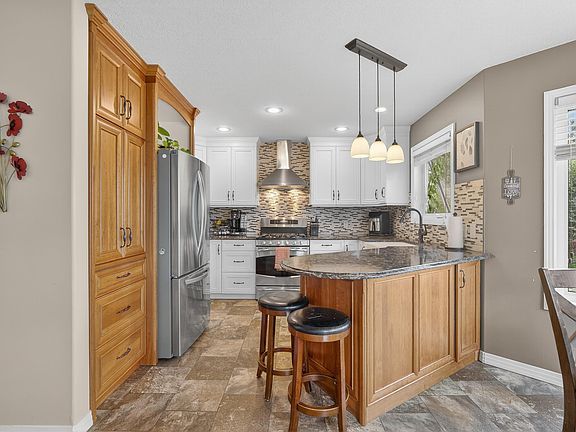 BACKING GREENSPACE, K-9 Dr. Donald Massey Elem, playground, soccer field + ball diamonds. 4 bed + office. 1,846 sq ft above grade + 683 sq ft basement =2,529 sq ft. Newer shingles (2018). Vaulted ceilings, newer kitchen cabinets, quartz countertops, island w/bar seating, new appliances in 2021, 2 dining areas, family room w/fireplace. Mirrored doors, soft corners, silent floors. Newer light fixtures, newer hot water tank (2009), upgraded exterior doors. Laundry room on main. Garden doors to professionally landscaped yard: mature trees, perennials, patio, pergola, shed. Spacious primary w/walk-in closet & updated ensuite. 2 bedrooms up: both w/oversized closets. Top floor has full bath w/jet tub. Finished basement is 682 sq ft: 1 bedroom + office, rec room & roughed-in plumbing for future bathroom. Furnace original (1994). Windows replaced in the last 10 yrs. Taxes $4,868.14 in 2024. Lot size 604.59 sq m. Seller will have carpets professionally cleaned prior to possession. Large 21'3" x 21'4" garage