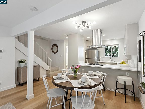 Enjoy downtown Danville with a minutes stroll to restaurants and shops! This recently updated 1,012 sq ft, 2 bedroom, 1 1/2 bath condo has a large private patio and is close to an expansive lawn. The kitchen has brand new quartz countertops/stainless steel appliances, bar seating, and a charming dining area. The roof replacement has just been completed as well as a new A/C unit. The natural light filled living area offers a newly renovated 1/2 bath, designer white oak LVT flooring, an inviting fireplace and large glass sliding door that leads out to the fenced patio. Upstairs you will find 2 spacious bedrooms with custom plantation shutters, large closets and views of the peaceful surroundings. The upstairs bathroom features designer touches, and the laundry closet is conveniently located right off the bedrooms. Other amenities include dual paned windows, recessed lighting, new light fixtures, rear storage closet, designated parking stall, and close proximity to the community pool. Enjoy the nearby award-winning schools, and all the many amenities that Downtown Danville has to offer! Great commute location to Highways 680/24.
