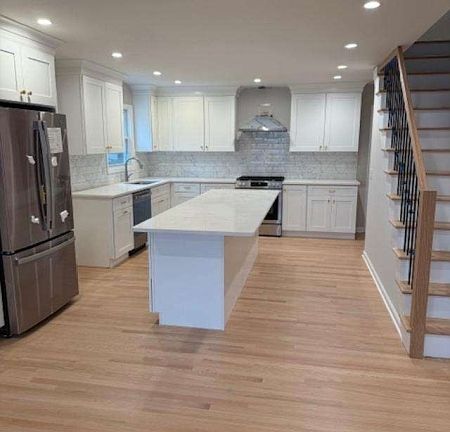Welcome to this stunning four-bedroom, two-bath home, thoughtfully renovated from top to bottom with today?s modern lifestyle in mind. Step inside to discover a bright, open layout with brand-new flooring, recessed lighting throughout, and stylish finishes. The beautifully updated kitchen features quartz countertops, stainless steel appliances, a large island with a built-in microwave drawer, and a freestanding range with a chimney-style hood. Just beyond the kitchen, a charming sunroom opens directly to the fenced-in backyard. You?ll also love the convenience of a first-floor laundry room. One of the bathrooms includes a custom frameless shower with a tile floor, bench seat, and quartz countertops. Plus, you?ll have the benefit of new two-zone heating and air conditioning, a new power-vented 50-gallon hot water heater and upgraded 200-amp electrical service. With all these modern updates, this home is truly move-in ready.?