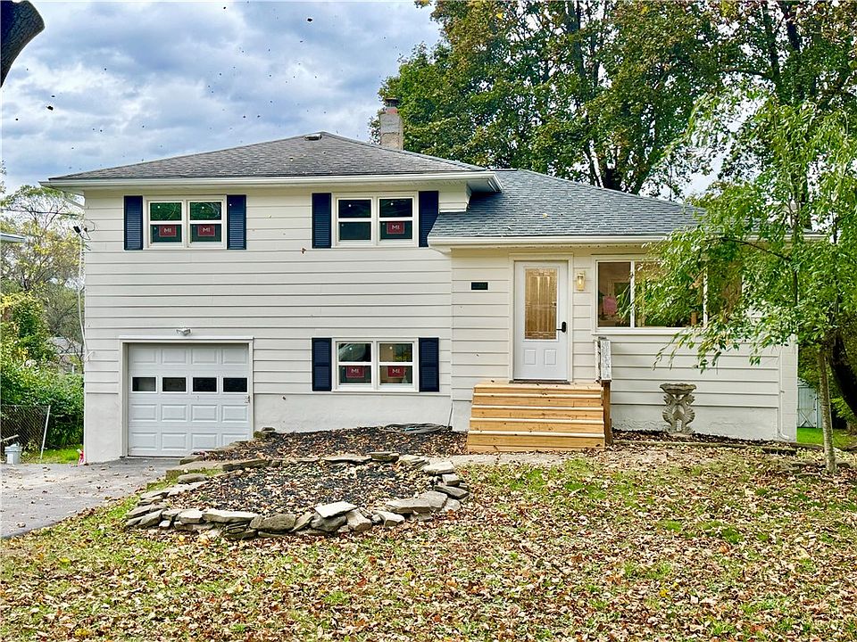 There is so much to love about this home, all you need to do is move right in and start making memories! Every room has been thoughtfully remodeled for any style of living and ownership size. Cozy up in the main living space with a bright open feel of a brand new eat in kitchen that offers ample white cabinets, beautiful butcher block countertops including a large island (perfect for baking/ food prep/ entertaining food display space) with storage and bar seating, stainless appliances (beautiful hood fan vented outdoors/ gas stove oven/ dishwasher/ refrigerator), large stainless sink with spray nozzle, stylish gold hardware, recessed LED lights on dimmer, skylight for extra natural light, sliding door to brand new deck overlooking yard. The spacious living room has plenty of windows including a large picture window, a wall fireplace to warm the space or just ambiance & lighting including dimmable recessed LED lights or a ceiling fan. Upper level has original wood floors & new carpet runner, 3 generous bedrooms with ceiling fan/light & updated spacious full bath. Conveniently located from the attached garage on the lower level is the laundry room (washer & dryer stay), a door to the large covered concrete patio (perfect for grilling anytime of year or hot tub space) & an inviting mudroom/ pantry area any homeowner will love & appreciate. Step down to the brand new lowest level for a treat- another bright (full size large window) spacious living room with 4th bedroom or office (has egress windows) and 2nd new full bath with walk in shower, this space could be perfect for additional private living space for guests. Maintenance free living is possible with so many updates including- new LVP flooring on 3 levels, new carpet runner on all interior stairs, furnace 2020, newer water heater, newer roof/ facia & gutters, whole home painted exterior and interior (Sherwin Williams), new windows, new front door & slider, new driveway replaced in last 5 years, large trees and branches recently removed. Fenced in Yard. Public water & sewer in Horseheads Schools too!! Owner Licensed NYS Realtor, No showings until 10/18. Open House on 10/18 1pm-3pm & 10/19 11am-12:30pm.