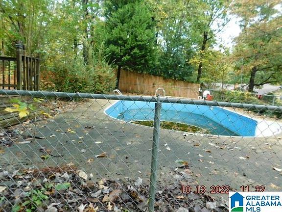 Large one level with workshop or office where 2 car garage was located. Open floor plan, split bedroom plan. Needs some bathrooms completed that were not finished. Fenced inground pool. Private back yard and covered patio. Private master suite.