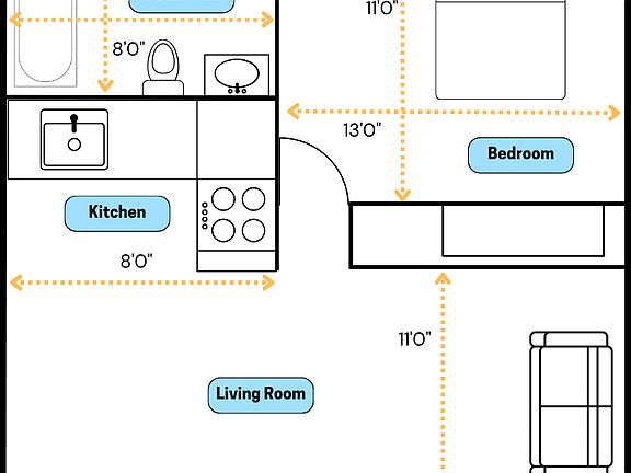 - Total interior livable area: 800 sqft