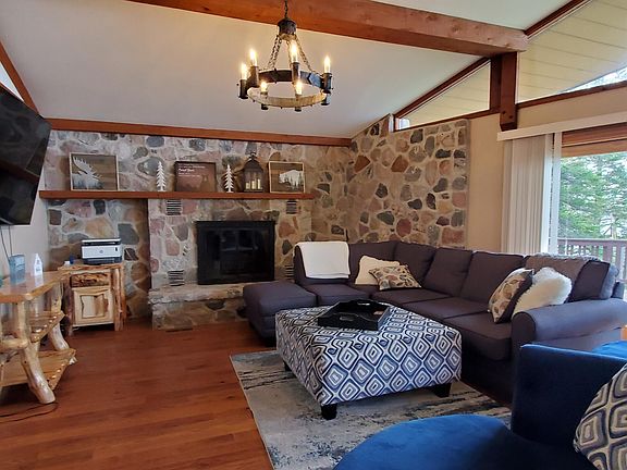Spacious 3 bed 2 bath Lake Huron waterfront home with beautiful views and a hard sandbottom on protected Mackinac Bay in Les Cheneaux Islands. Enjoy plenty of sunshine from spacious 200' of southern waterfront views through beautiful floor to ceiling windows that overlook a multi-level deck. The expansive lawn has a gentle slope to your permanent dock with floating covered boat well. 2 stone fireplaces up and downstairs combat the chill of the cooler spring and fall evenings. Detached 2.5 car garage is accessible via covered breezewayso you don't get wet. Paved driveway for easy maintenance in the summer and winter. Your waterfront retreat awaits!
