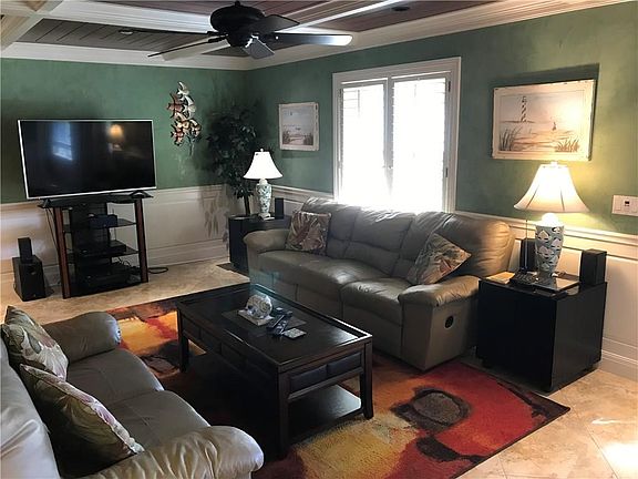 Fabulous... upgrades/quality craftsmanship.Ladies & Gentleman don't settle for mediocre!Life is good.Great rm concept features:coffered ceilings,tongue & groove accents,crown trim finishes. Ladies wait until you see your kitchen offers granite,pantry.Much in demand split bed room flr plan.Bonus/exercise/den/computer rm.Colossal scrnd porch overlooking your pool & custom Tiki Hut. Plus...