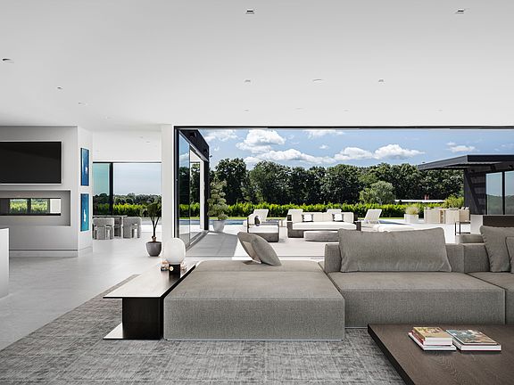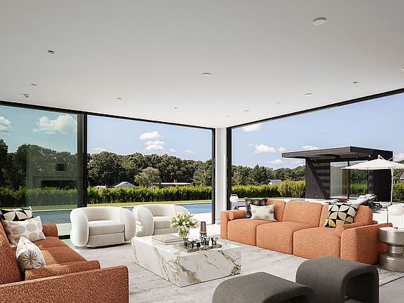 A triumph of modern farmhouse design, this stunning, newly completed estate by East End Building Company sprawls across 1.5 acres, offering breathtaking southern views over a 50-acre reserve. Encompassing over 12,600 square feet across three levels of finely articulated space, this home is an architectural marvel, designed with luxury, comfort, and functionality in mind. A dramatic 11-foot custom pivot door welcomes you into a two-story foyer, where a floating steel staircase with white oak treads and concealed lighting sets the tone for the exquisite detailing throughout. Expansive Fleetwood floor-to-ceiling windows flood the home with natural light, while two fireplaces add warmth and sophistication. The main level fans out over large format, heated porcelain tiles hitting all the right notes with a grand great room with fireplace, a family room with a see-through linear fireplace, a formal dining room, a study, and a junior primary suite with spa-like amenities. The heart of the home, a bespoke Gary Ciuffo-designed kitchen, boasts dual Gaggenau refrigerators, a Wolf 60-inch range, Miele induction cooktop, a coffee station, a chef's prep kitchen and separate pantry ensuring both beauty and practicality. A powder room, mud room and a heated, 3 car garage complete the first floor. The second floor, covered in rift and quarter sawn white oak, features a luxurious primary suite with its own sitting room, spa bath with radiant-heated floors, and access to expansive decks overlooking the reserve. Four additional en-suite bedrooms, each with walk-in closets and seamless shower designs, offer unparalleled comfort.An office and laundry room adds convenience while 1140 SF of sustainable Timbertrek decking servicing multiple suites completes the second floor. A short staircase ascends to the 800+ SF rooftop deck, perfect for that postprandial cigar while surveying your domain. A separate staircase descends to the finished lower level, a retreat of its own, boasting a 1,500-bottle wine cellar, a screening room, a game/billiard room and a wellness center with steam room, gym, and a massage/yoga studio. Two additional bedroom suites, a powder room and ample space for a golf simulator, bowling alley, or sauna complete this impressive space. Outdoor living is redefined with an 18' x 56' heated saltwater pool and spa, a 240-square-foot pool house, a trellis-covered lounge, and an outdoor kitchen equipped with a Lynx professional grill and a Marvel stainless-steel beverage center. A Century-built, all-weather north/south tennis court is framed by cedar fencing, while manicured lawns provide space for backyard activities. Every detail of this home has been meticulously considered, from the Abodo fine-sawn wood cladding and black standing-seam aluminum roof to the concealed HVAC vents and Lutron lighting system. With radiant heat throughout the first floor, a whole-house Sonos sound system, 400-amp electrical service, and Control4 automation, this residence is as technologically advanced as it is beautifully crafted. Designed by the award-winning team at The Up Studio, with landscape design by local experts, this home is a rare fusion of innovative design and timeless Hamptons elegance. Perfectly positioned between Southampton and Water Mill, this one-of-a-kind estate offers the ultimate Hamptons experience.