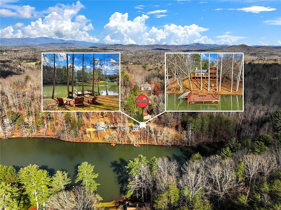 Welcome to this stunning home, offering breathtaking water views from the entire backside of the property. Enjoy your own private oasis with access to canoeing, fishing, and ultimate tranquility. Situated on a rare, private lake with only a handful of homes, you'll experience peace and serenity. The expansive back deck, featuring a double-decker covered porch, is the perfect spot to relax and take in the views. Inside, hardwood floors flow throughout the main level, where the family room boasts soaring ceilings and a beautiful stacked stone wood-burning fireplace—ideal for cozying up after a long day. The exterior is easy to maintain vinyl siding and the roof is a tin roof that will last longer than any other. This home offers four spacious bedrooms, including one conveniently located on the main floor. The kitchen is a chef's dream, featuring quality wood cabinetry and an eat-in area. A well-appointed laundry room is adjacent to the main floor bedroom for added convenience. All closets in the home are generously sized walk-ins. Upstairs, you'll find three additional bedrooms and a full bath. One of these bedrooms includes a private covered outdoor deck with views of the water, creating your own personal retreat. If you're looking for an investment opportunity, this property allows for Airbnb rentals, though many owners in the community choose not to rent. 10 Minutes to Helen and surrounded by wineries. With ample parking and a flat area perfect for a campfire, you'll love stargazing and enjoying peaceful nights under the open sky.