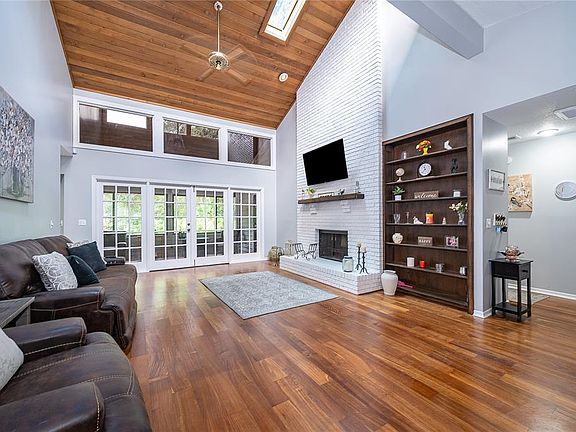 Beautifully updated gem nestled in the highly desirable Springs Landing community in the Markham Woods area of Longwood. Expansive tongue and groove ceilings welcome you as you enter the front double doors along with abundant natural light assured by skylights and clerestory windows. Your focus will immediately turn to the floor-to-ceiling fireplace in the great room complemented by Southern chestnut engineered wood in the main living areas. Plantation shutters add character and atmosphere to your experience. The kitchen features newer stainless-steel appliances, granite countertops, and an eat-in area with access to a huge sunroom along the rear of the home. The master suite features Closets by Design with a 14x20 attached study/library complete with bookshelves and a computer desk. The master bath offers a spa bath along with a separate shower. You will enjoy the exquisitely landscaped exterior and a rear yard made for lovers of nature. Very well maintained with new roof/skylights in July 2023, zoned HVAC in April 2018, seamless gutters in August 2019, and exterior/interior paint in late 2023 and 2024. Community amenities include a clubhouse, community pool, and playground.