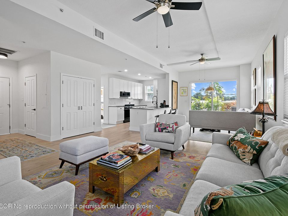 Experience the epitome of waterfront living in this spacious 1-bedroom, 1-bath residence at Flagler Landing, nestled directly on the Intracoastal Waterway. Boasting an oversized balcony with breathtaking views, high ceilings, and abundant natural light, this apartment offers a serene retreat. Hardwood floors and blinds throughout add elegance to the modern interior. Flagler Landing provides exclusive amenities including a community pool overlooking the renowned Rybovich Marina, a fitness center, and 24-hour guarded gate security. Residents also enjoy privileged access to the private dockside restaurant situated within the marina, perfect for waterfront dining experiences.